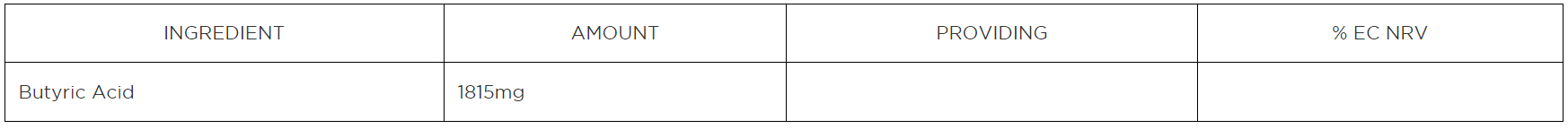 - High strength butyric acid providing 1815mg of the supportive short chain fatty acid per daily intake